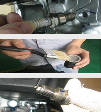 用鐵釬清除火花塞積炭,用刷子清除火花塞上雜物